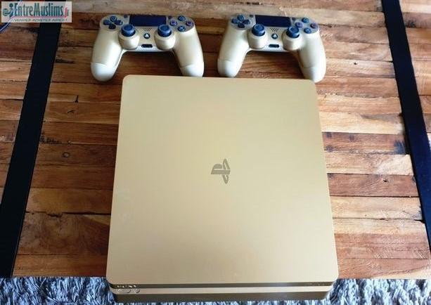 PS4 version limitée GOLD vendue avec 2 manettes,500 GO de stockage, Très peu servie, état neuf, avec carton d'emballage.