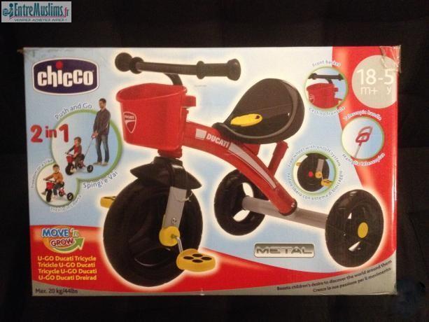 vends tricycle enfant en métal neuf dans carton jamais utilisé avec poignée de guidage .