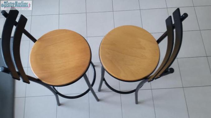 je vend 2 chaises de bar en trés bon état 15e la pièce + 2 carreaux de chaises ikea offerts .
