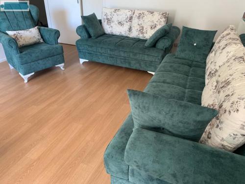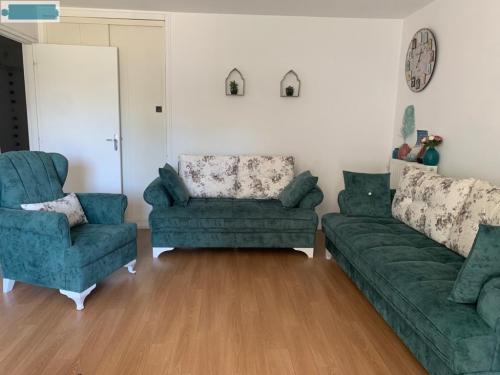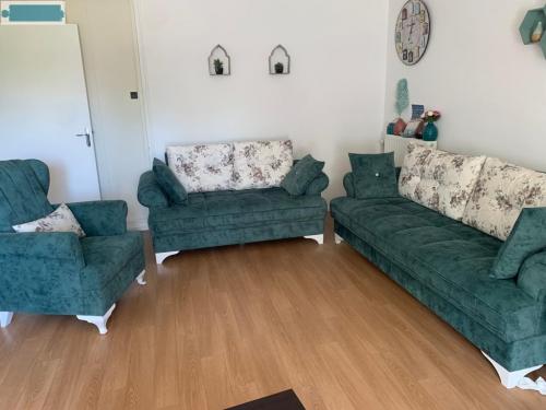 Très bel ensemble canapés fauteuil couleur vert agréable solide et confortable composé de :