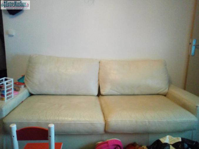 je mets en vendre un canapé cuir en bonne état général ( quelques petites égratignures sur les 2 côtés . Le canapé est très confortable et de couleur blanc cassé.