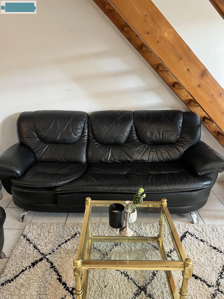 Salam ! Je fais don d’un canapé noir en cuir 3 places ainsi que son fauteuil 1 place en bon état, de mesures :