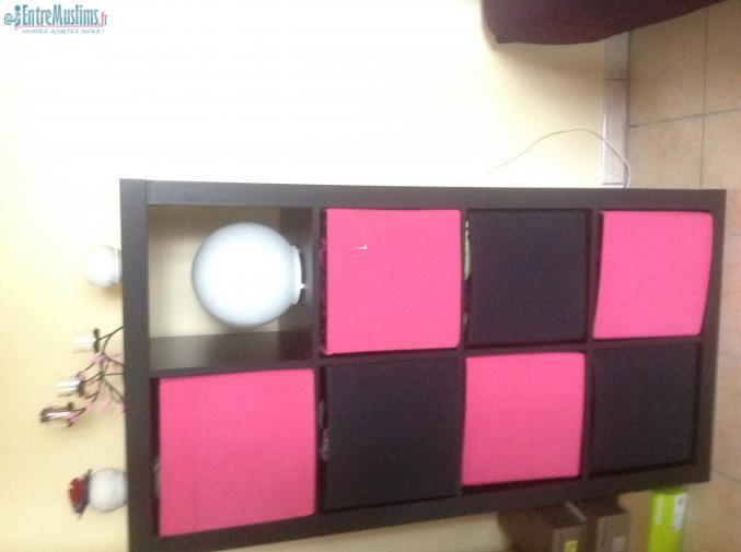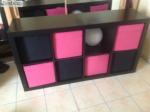 A vendre etagere expedit ikea noire 8 cases vendu avec 7 casiers en tissus 4 roses et 3 noirs