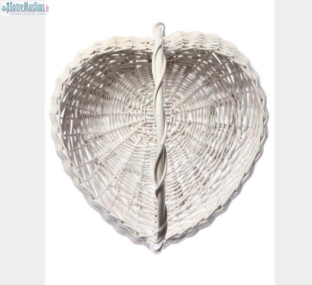 Grand panier en forme de cœur blanc pour mariage ou bapteme