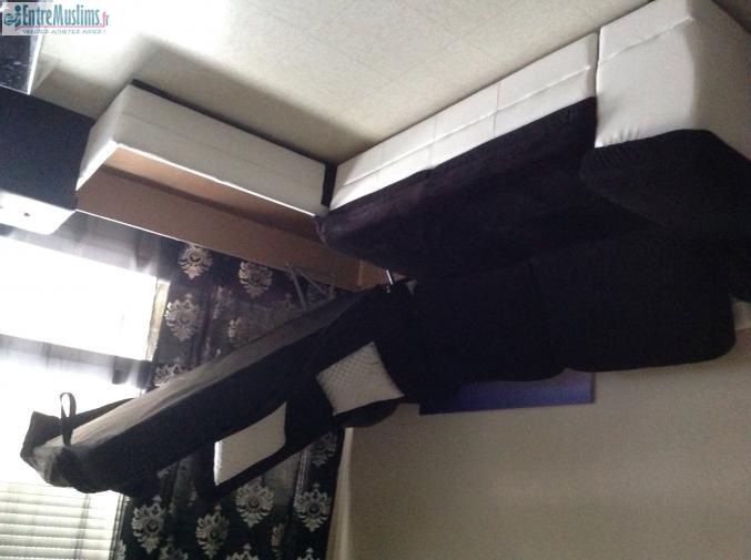 vend ce magnifique canapé d'angle noir et blanc simili cuire avec coffre et convertible en lit il est neuf je l'ai acheter Ya 5 mois pour plus d'info me contacter ou mon mari