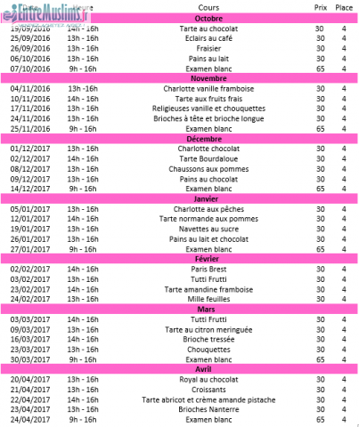 Voila le planning des cours, les inscriptions commencent aujourd’hui et se clôturent le 25/09/2016.