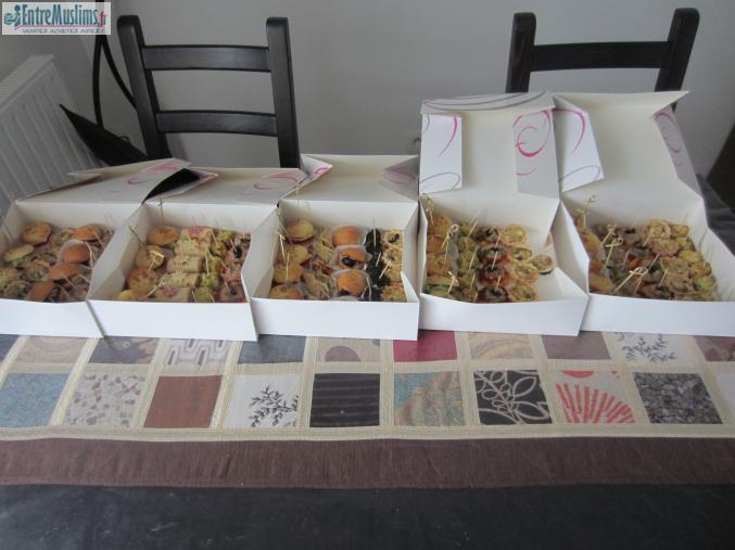 Réalise des amuses à bouches et des verrines salés qui accompagneront à merveilles vos réceptions(mini pizza, mini crepe samossa crevette ,mini fricassé, mini tajin ,mini tajin bey mini hamburger .....)( plateau 50piéces a 28euros) .