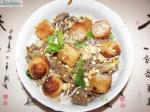 Bobun, nouilles sautées, salade de bœuf façon thaï, salade de crevette exotique 6,50€ la portion.