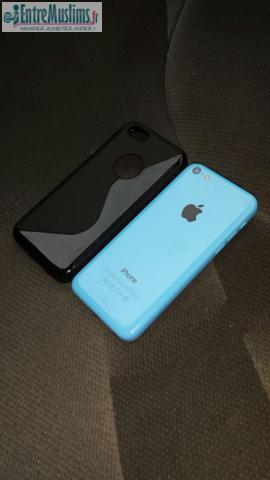Je vends mon iPhone 5c bleu avec écran verre trempé déjà poser, coque en silicone et chargeur
