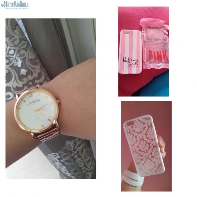 Je vend 2 coques iphone 5 victoria secret (rose) et la blanche pour iphone6 10€ une seule .La montre MK inspi 20€