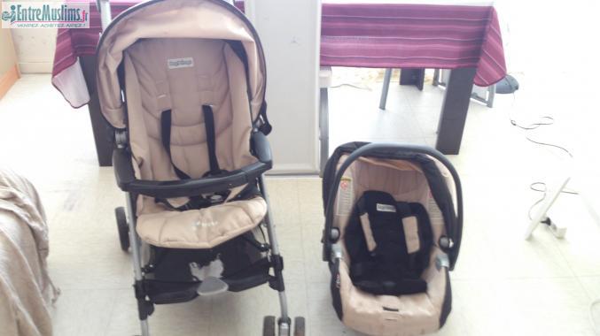 je vends poussette ,avec sa nacelle ,son siège auto (tous les 2 peuvent se fixer sur la poussette) et son sac de rangements.