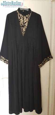 Je vend cette abaya avec de jolie motifs en velours, qui taille jusqu'à un 44 maxi pour 1m63 maxi, avec son châle. Il y a 2 cordelettes a l'intérieur pour cerrer au niveau de la taille.
