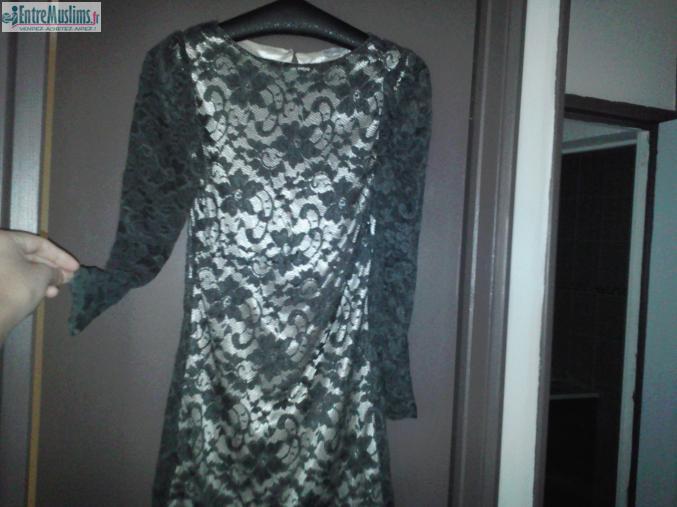 Robe en dentelle noir, avec une doublure beige satin élastique .