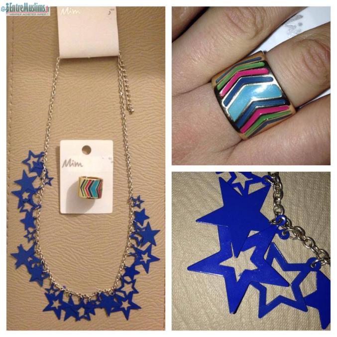 Je vends ce collier bleu plus bague assortie de chez Mim.