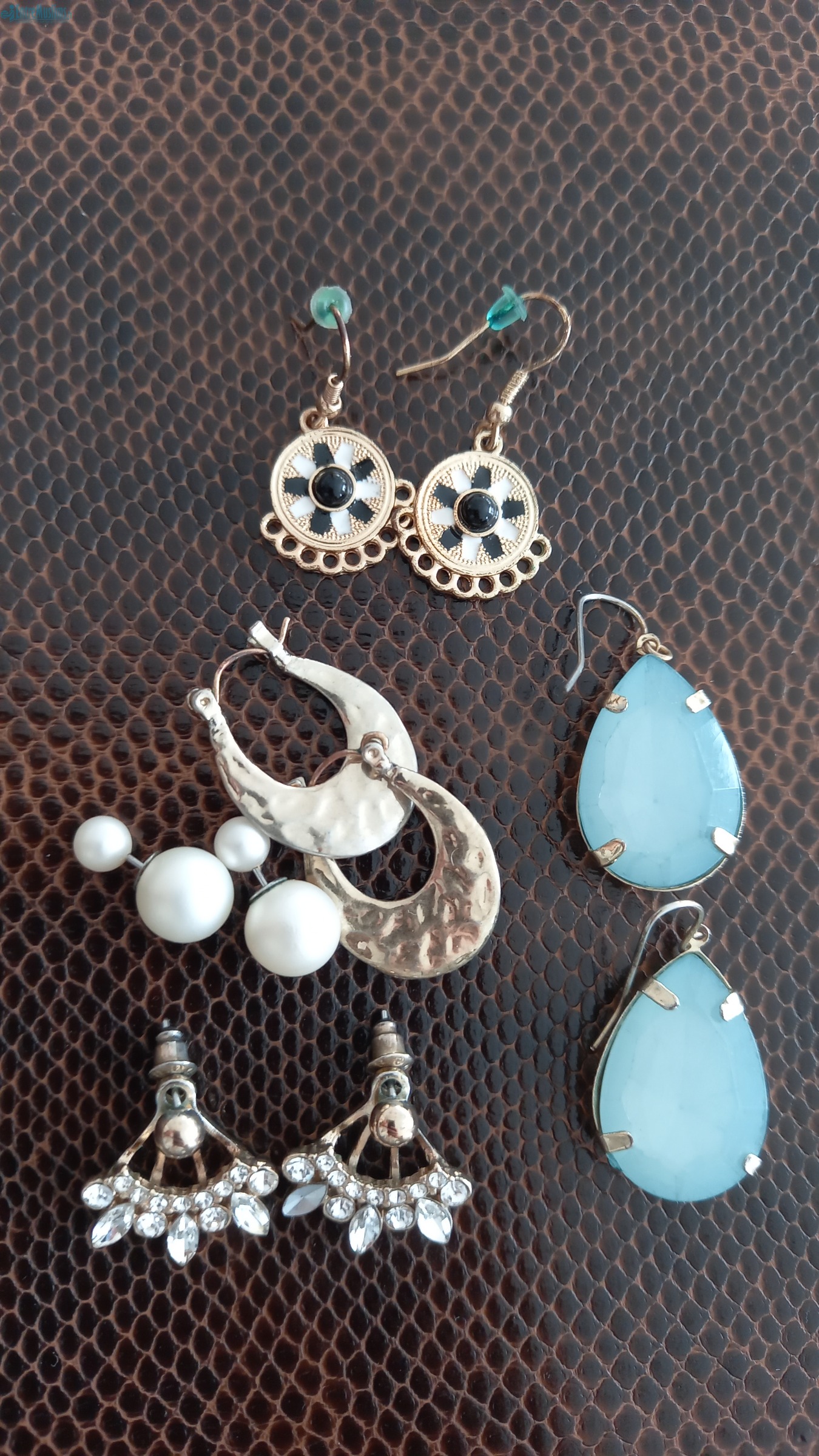 5 paires de boucles d'oreille en bon état, ilmanque juste un strass sur la paire en bas de la photo