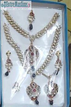 ensemble de 2 colliers + 1 chaine avec pendentif + bague + boucle d'oreille + bijoux pour le front