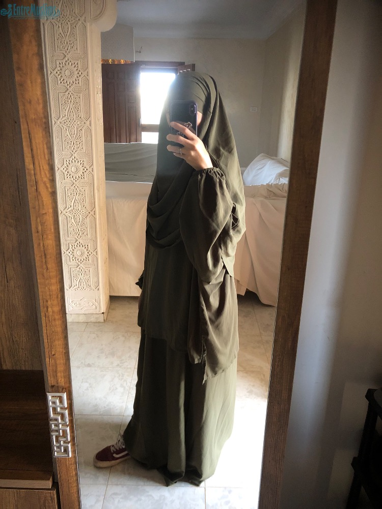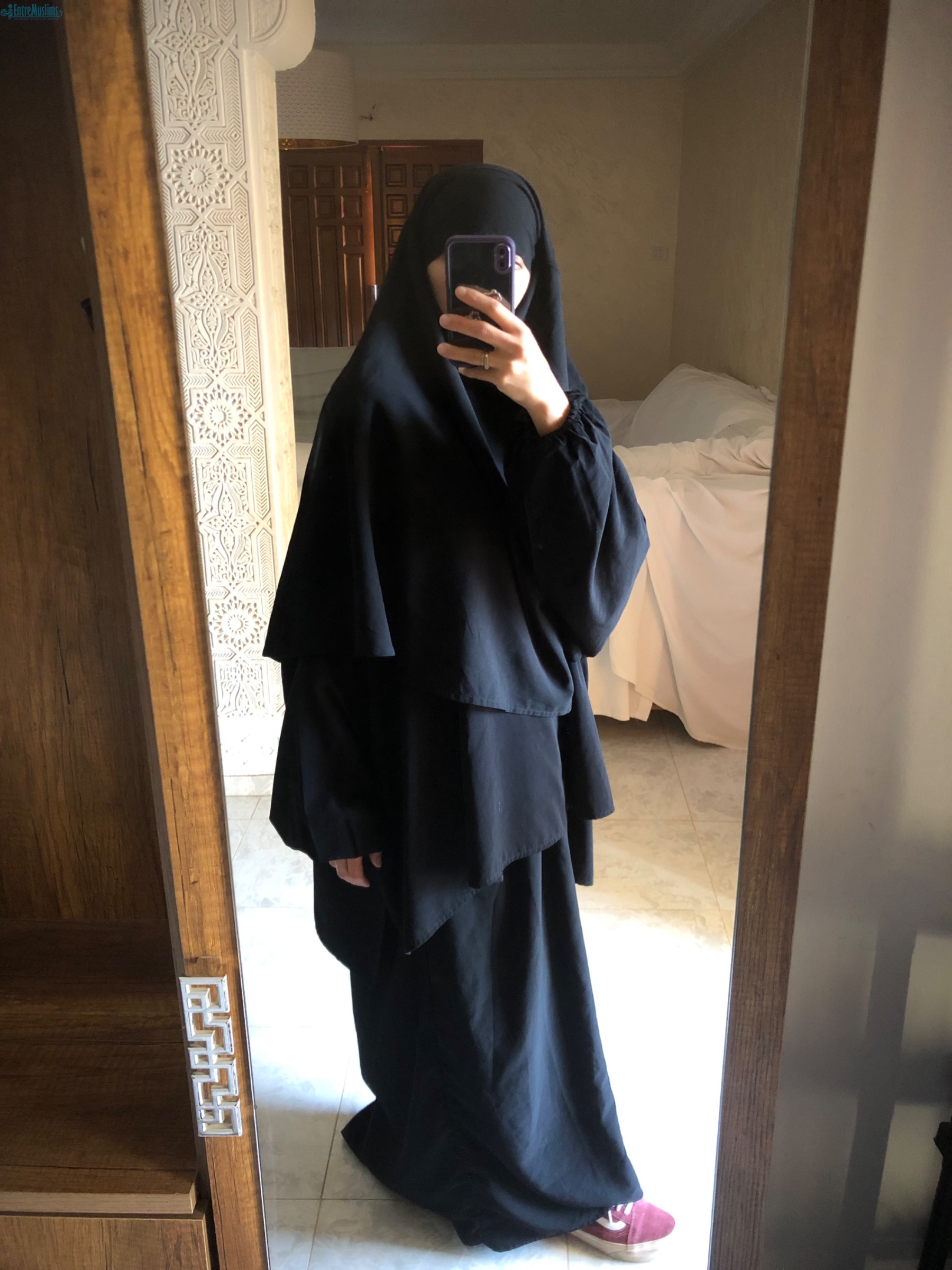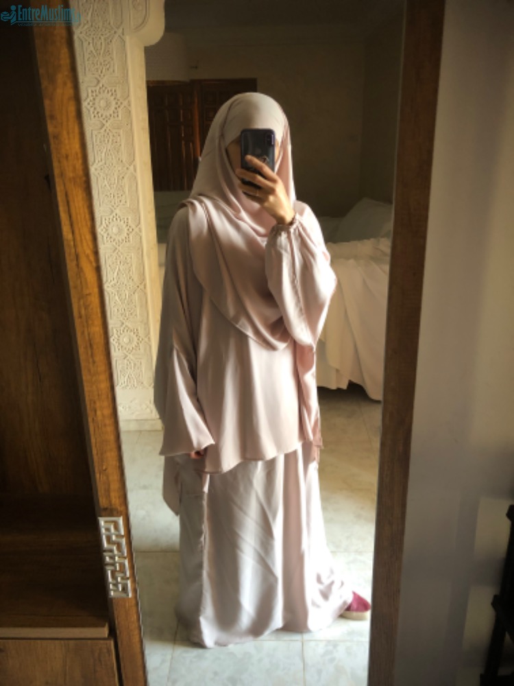 C est une jupe avec une tunique à manches amples et Khimar qui s’attache comme un jilbeb