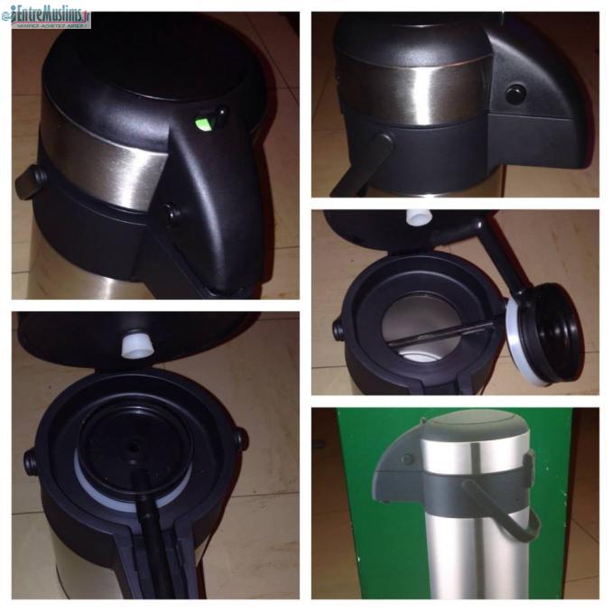 Je vends ce pichet thermos inox pompe, d'une capacité de 2.5 litres, produit CE (conformité européenne).