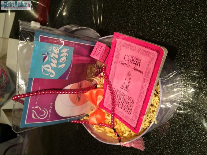 Coran (chap AMMA fr,ar,pho), chapelet 99 rose, musc, hijjab enfant et barrette.