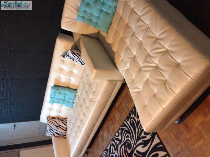 Salam alleykum wa ramatullah wa Barakatuh Vend pour financer ma hijra un canapé blanc trois place et sa méridienne bonne état acheté 1000€ Îl y'a un an je vend l'ensemble a 200€
