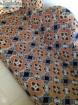 Le tissu orangé est composé de : 3 housses de matelas, 3 dos de chameaux et 5 accoudoirs. L'ensemble est comme neuf.