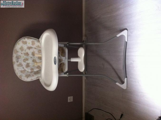 Vends chaise haute Graco extra pliable, cale pieds reglable sur deux niveaux , plateau ammovible et réglable sur 3 niveaux.