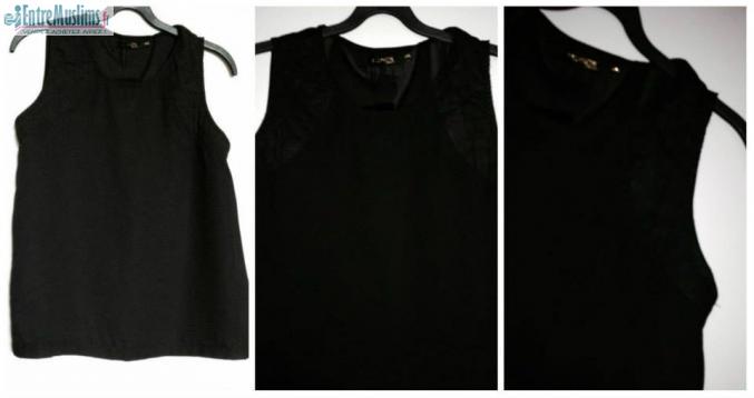 Je vends ces chemise noir sans manche avec décoration au niveaux des épaules.