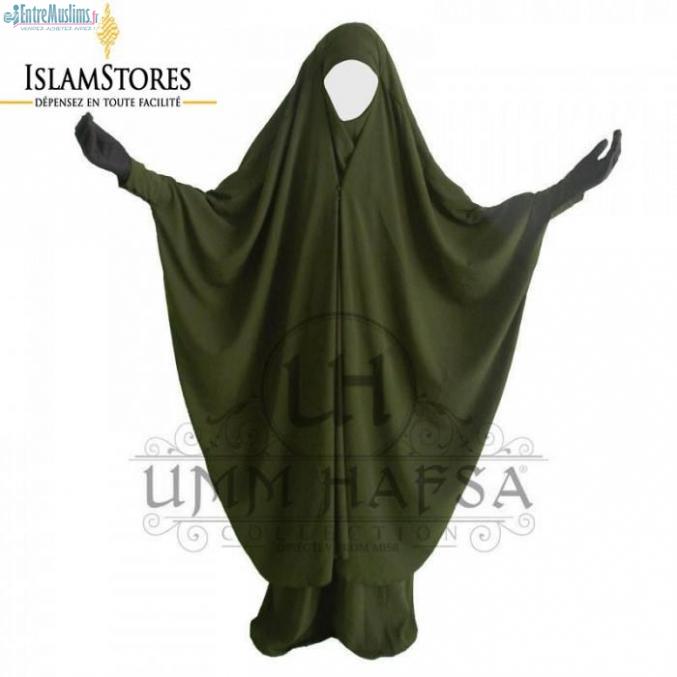 Je vends un jilbeb a clips deux pièces umm hafsa vert kaki taille 1