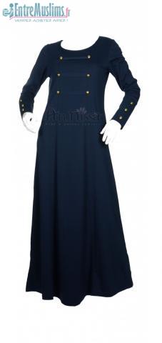 Salam aleykoum je vends une robe style officier bleu marine en coton avec poches sur le côté achetée chez An Nissa en taille 42