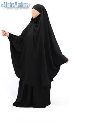 Jilbab composé d'un khimar au bandeau intégré avec manches élastiques aux niveau des poignets.