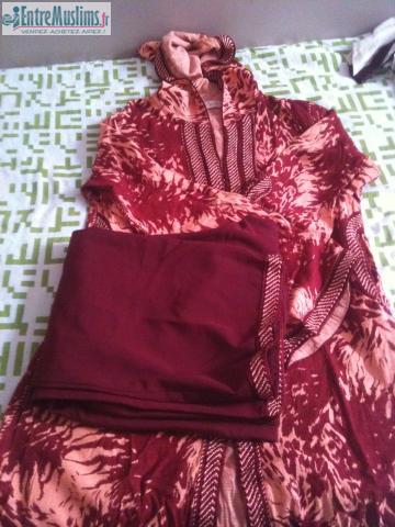 jabador rouge bordeaux : 35 euros ( tissus de qualité et le haut descend juskau cheville très jolie)