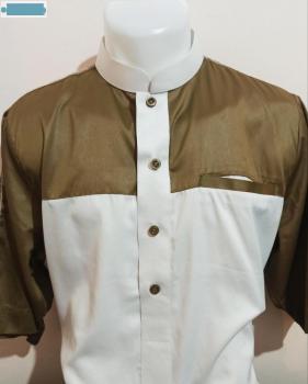 Simple et élégant avec un tissu de qualité légèrement satiné, boutons assortis, 3 poches, manches courtes.