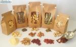 Les fruits secs sont en vrac dans des sacs krafts de 125g, 250g, 500g et 750g.