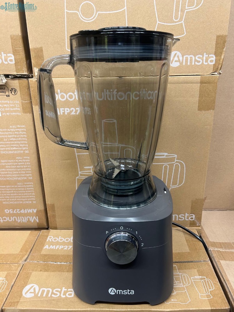 AMSTA AMFP275G, ( fabricant shneider) Robot de cuisine multifonction, Bol 2 litres, Blender 1.8 litres, 2 vitesses + Pulse, Pieds antidérapants, Lames acier inoxydable.