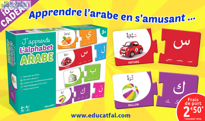 Jeu d’association à travers lequel votre enfant va découvrir les lettres et leurs différentes formes d'écritures, mais aussi enrichir son vocabulaire arabe avec 28 mots illustrés. Un livret vous est fourni incluant les règles du jeu, un guide de prononciation des lettres, un guide de conversation et la phonétique.