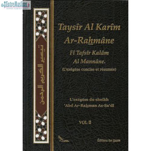 Je vends les 2 volumes du livre "Taysîr Al-Karîm Ar-Rahmân Fî Tafsîr Kalâm Al-Mannâne" (L'exégèse de 'Abd ar-Rahman As-Sa'dî) en 2 volumes à 29.50€ au lieu de 59€. Le livre est en français.