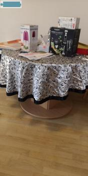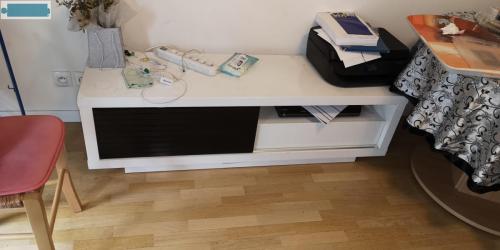 Bonjour donne table basse, micro onde, meuble tv, table à manger avec les 4 chaises, la table est à manger est extensible personne dans le besoin
