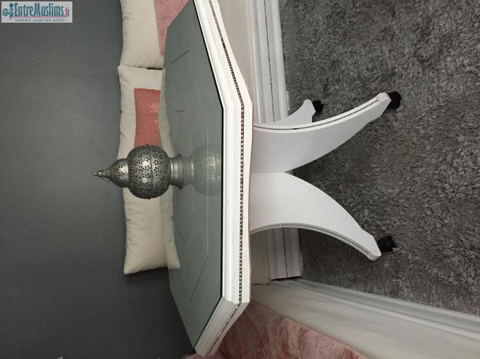 Je vends ma table de salon blanche laque avec sa vitre