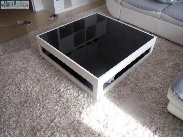 Je vend cette magnifique table basse en verre noir et le contour blanc laqué .