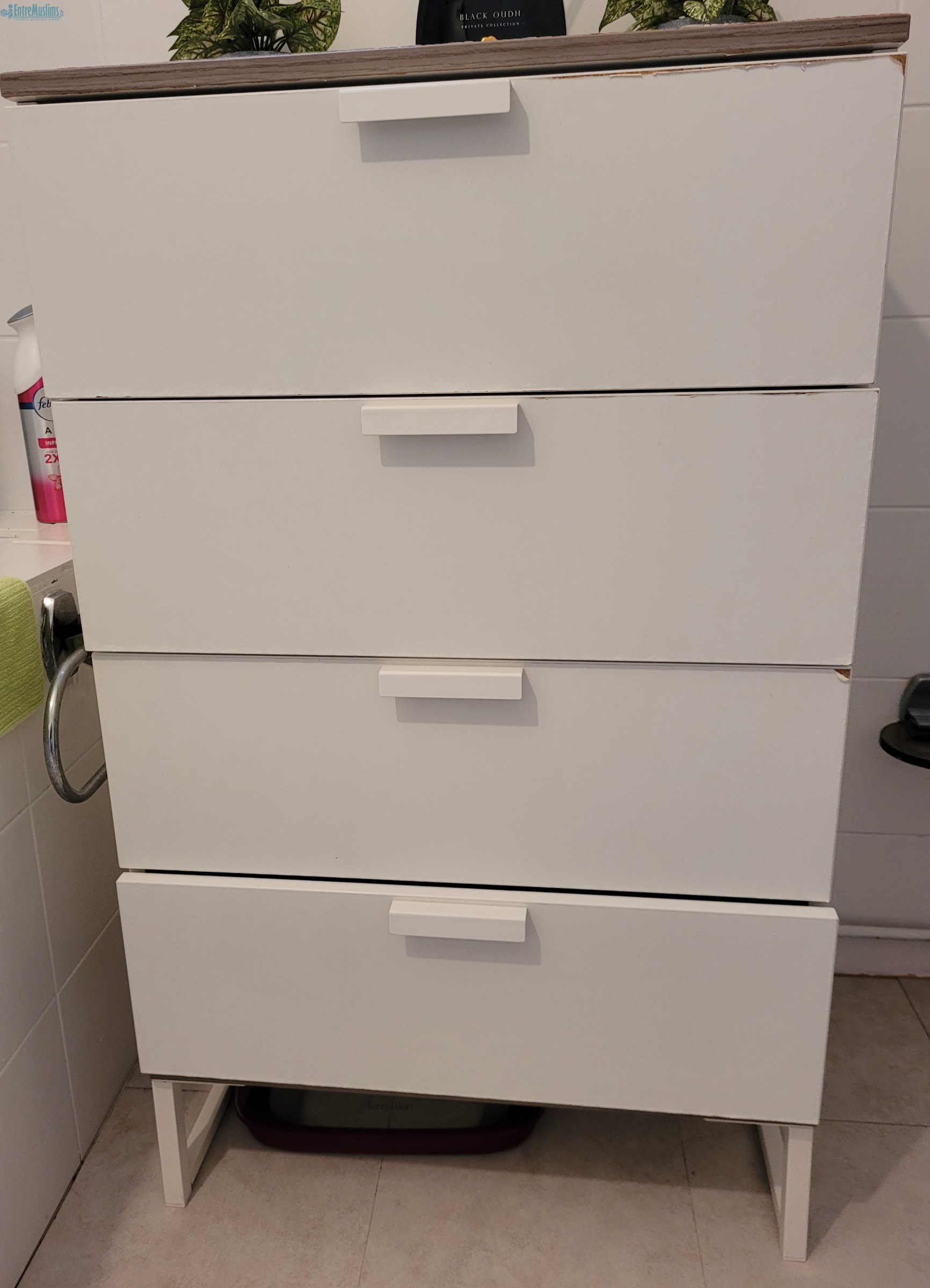 Le dessus un peu abîmé. peut facilement être redecoré avec du papier adhésif décoratif
