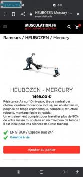 Salem wa3leykoum wa rahmat'Allah wa barakatou Je vend ce rameur d'excellents qualités robuste très solide le heubozen mercury sa réputation n'est plus à faire se sont les rameurs professionnels qui équipent les salles de sports, tel que fitness Park, basic fit et d'autres salles de sport. L'ayant depuis 6 mois rameur neuf excellent état hyper fiable solide increvable avec sa chaîne ⛓️ et sont tirage par air qui sont les rameurs les plus fiable du marché. Je vous laisse les caractéristiques du rameur en photo, remise en main propre Sportivement . Hésité pas à me posé vos questions elle sont toutes les bienvenus, j'ai bien sûre encore la garantie.