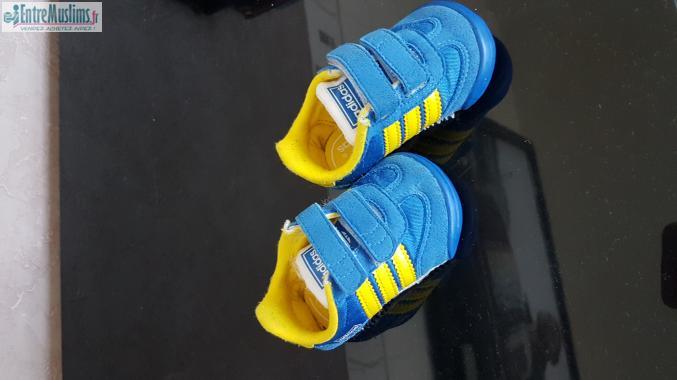 A VENDRE BOTTINE BLEU WINNIE ET BASKET ADIDAS DRAGON 15E LA PAIRE ETAT PARFAIT.