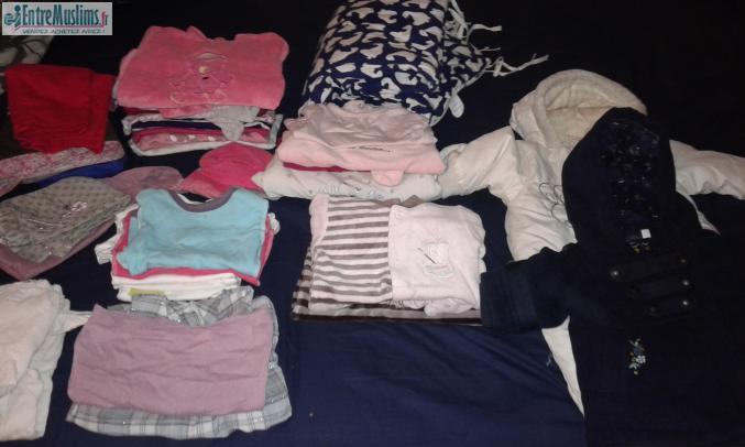 Donne un lot de Vêtement bébé pour fille de 0 a 12 mois.