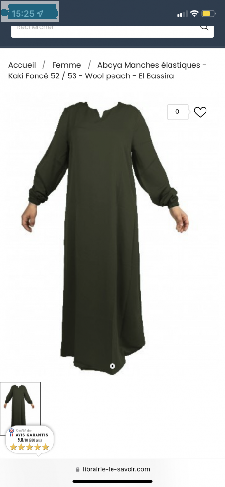 Abaya El Bassira Caviary kaki taille 1 (neuve sans étiquette)