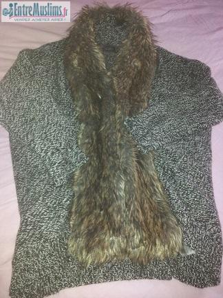 a vendre superbe gilet gris col fourrure détachable neuf GUESS