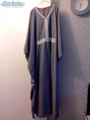 abaya grise claire taille unique strass sur les manches et ceinture
