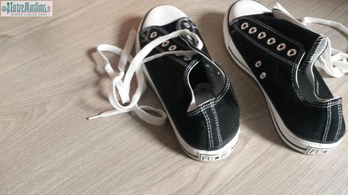 Je vend une paire de basket en toile neuve , couleur noir et blanc , taille 41 -41 et demi .