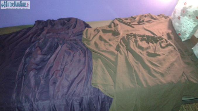 Je vend deux jilbeb jamais porter un marron deux piece jupe et un violet satiné deux piece jupe les deux a 40e ou 23e le jilbeb.