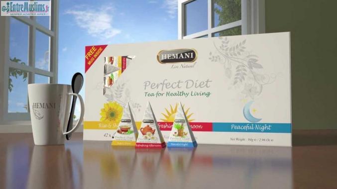 La box Perfect Diet Hemani contient 42 sachets de thés individuels ainsi qu'un mug OFFERT .