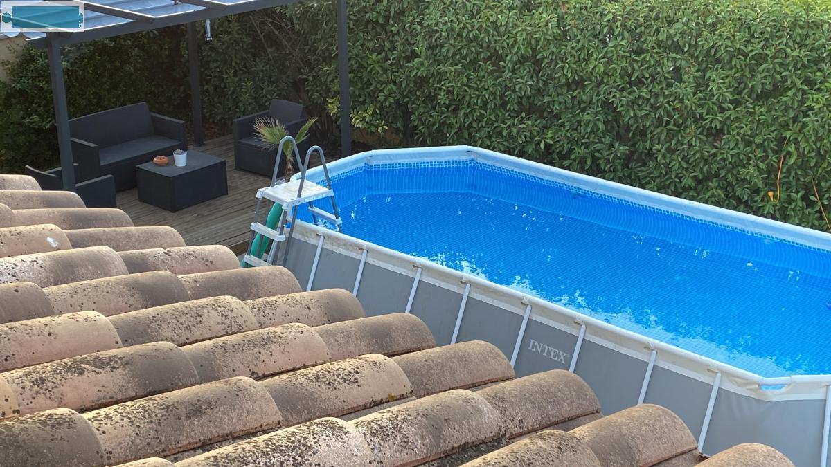 Côté pile une piscine hors sol de 6m sur 3 agrémentée d’une terrasse en bois de 18m2 sous une pergola pour se rafraîchir entre deux baignades ou surveiller celle des petits à l’ombre